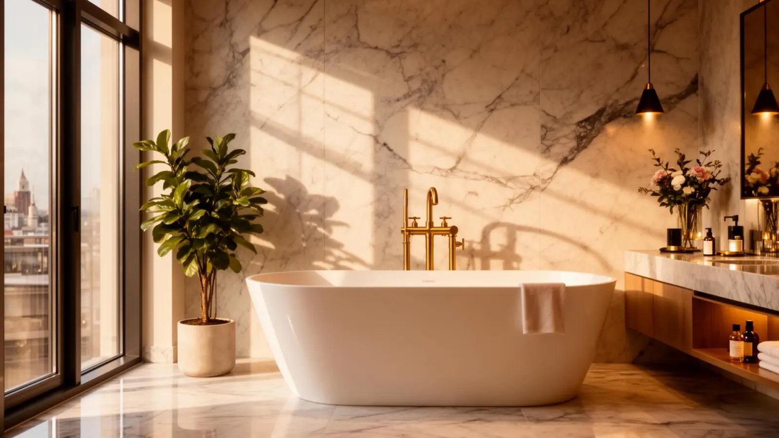 Luxury freestanding bath with brass fixtures